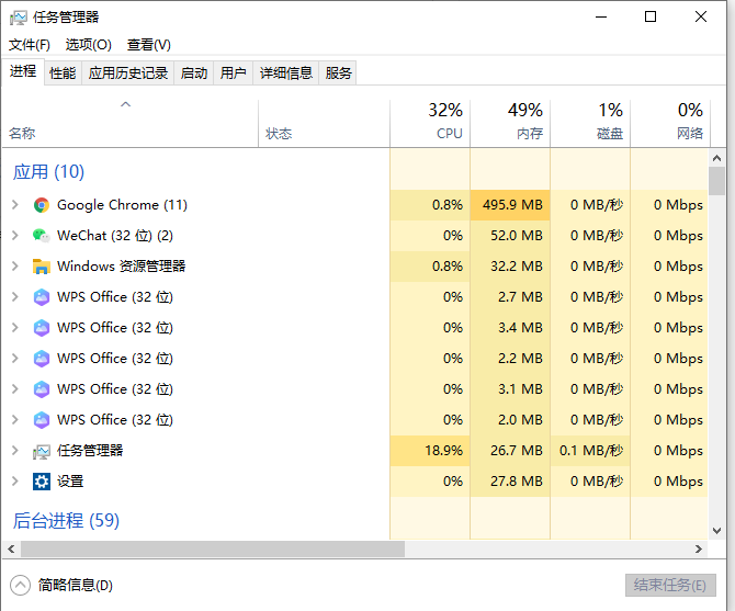 2、在Win10【任务管理器】的【进程】选项卡中 ,然后找到【资源管理器】,如下图所示:windows资源管理器,掌管所有Windows界面,如桌面、文件夹、Windows窗口;