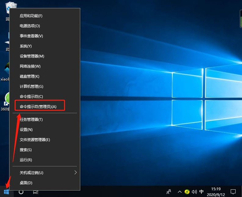 1、我们右键单击开始菜单,打开命令提示符(管理员)。