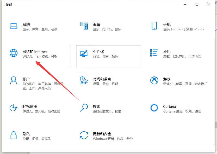 1、“win+i”打开电脑设置,然后点击“网络和internet”。