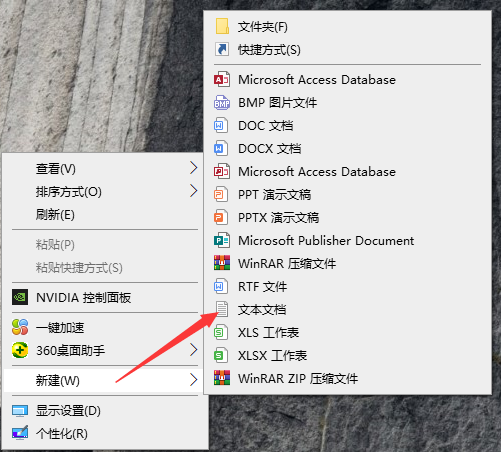 1、桌面空白处,点击右键,在打开的菜单项中,选择新建文本文档。