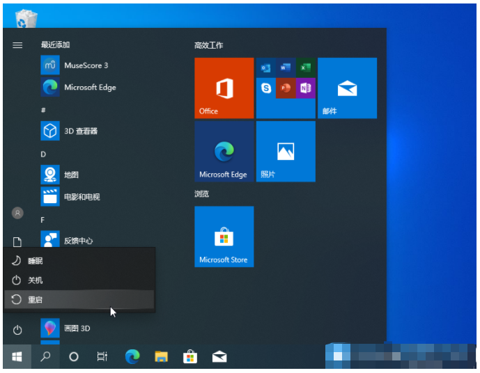 1、按Win键,或点击左下角的开始菜单,在打开的菜单项中,找到电源,但是不要着急重启,按住键盘的Shift键,再点击重启;