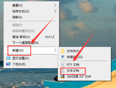 1、我们先在桌面上用鼠标右键单击空白处,选择页面中的【新建】按钮,在下级菜单中选择【文本文档】。