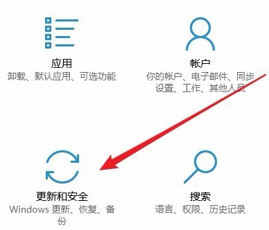 7、打开Windows设置窗口,在窗口中点击“更新和安全”图标。
