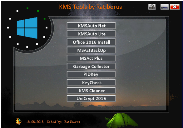 2、解压后双击打开KMS Tools工具,主界面列出多种工具,前面三个都是KMS激活工具,我们点击第一个。