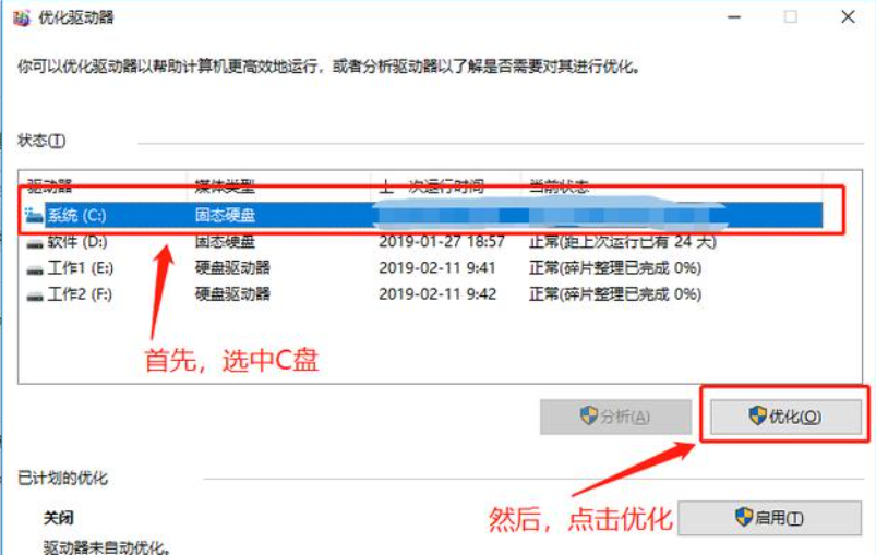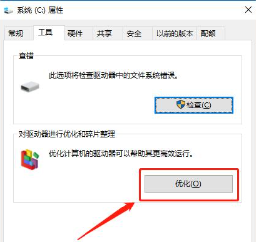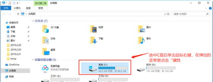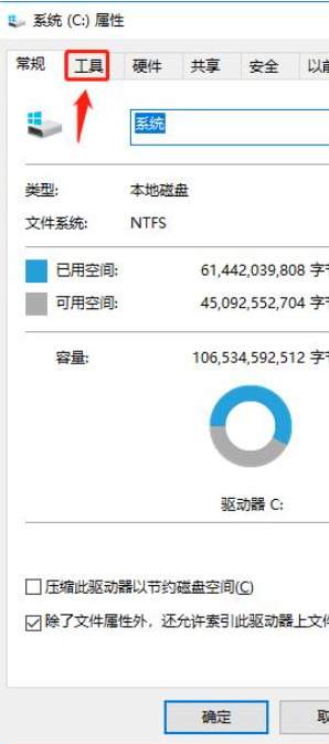 5、回到“此电脑”对话框,选中C盘,右键点击进到属性对话框,点一下“工具”选项卡