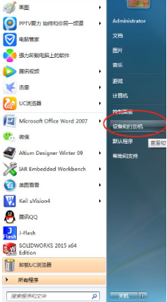 2、点击左下角的开始菜单,点击设备和打印机,进入打印机设置的页面。
