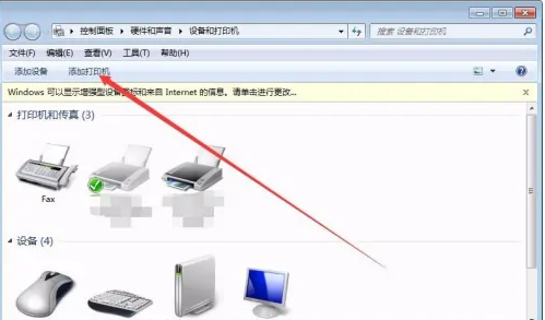 2.打开设备和打印机后,其中选择添加打印机并点击,如下图所示。