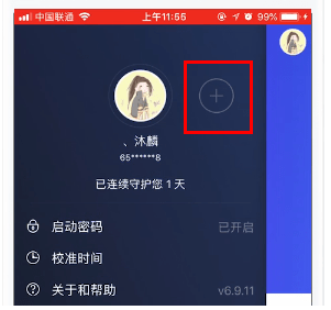 2、在已经登陆的账号的右侧可以看到【+】图标,我们点击后就能根据提示绑定新的QQ号了,一个安全中心app最多可以绑定【三个账号】。