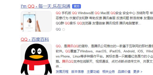 2、点击搜索后,我们能看到qq的官网。