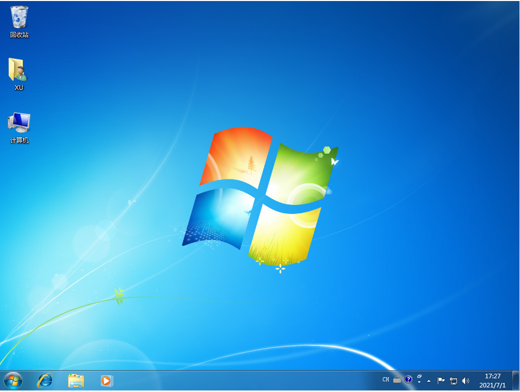 重启电脑后进入新的win7系统桌面即可正常使用。
