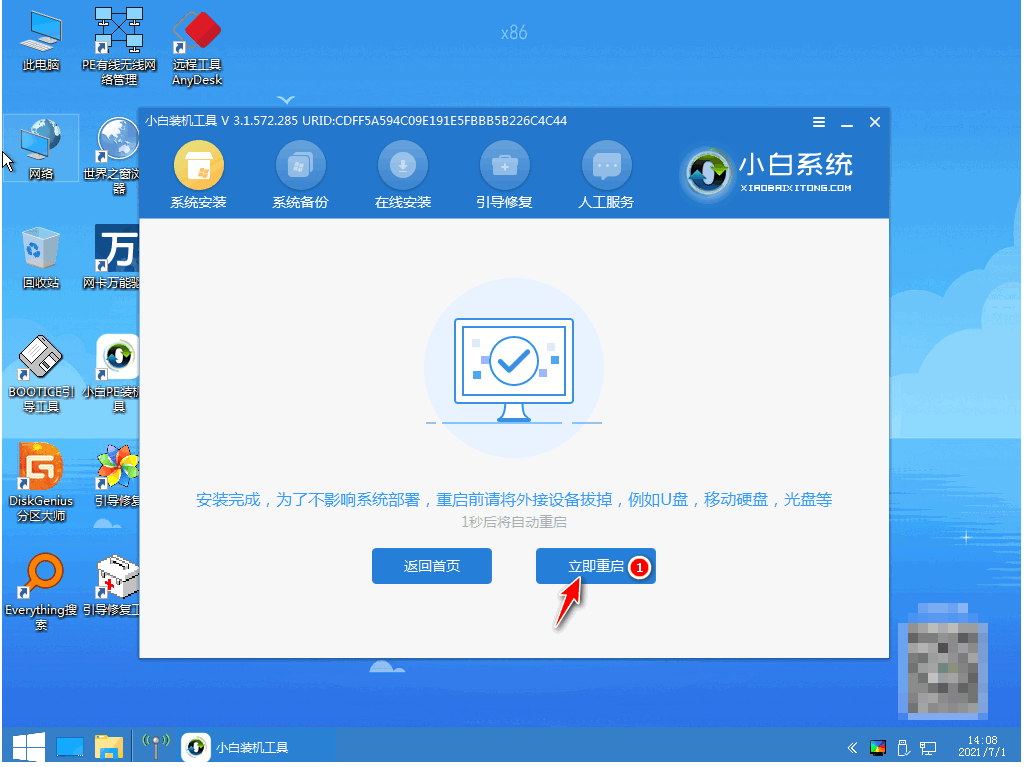 在pe系统内软件自动安装,直到提示安装成功后重启电脑;