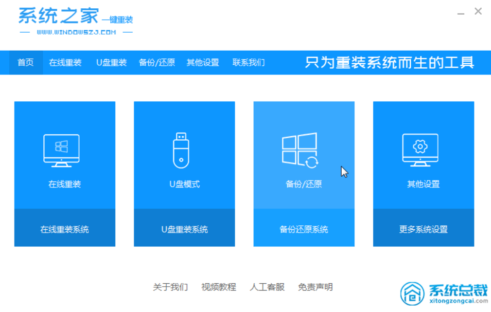 1.先下载系统总裁一键重装系统软件,然后双击打开,等待软件启动后点击【备份还原】。安装前记得备份系统磁盘上的重要数据。