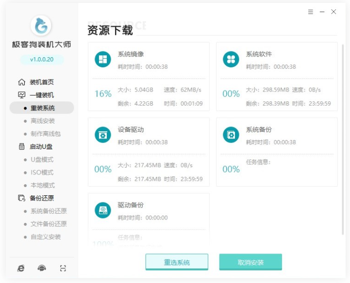 4、随后软件开始自动下载win7系统文件和环境部署,耐心等待即可。