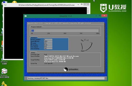 5、当进入到这个界面就是执行系统的解压过程啦。