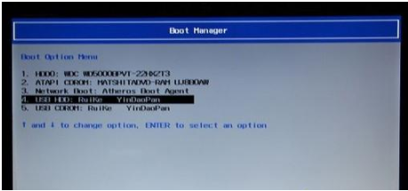 2、在acer电脑usb接口上插入U盘,重启电脑时快速按F12,选择USB HDD选项,按回车键确定。