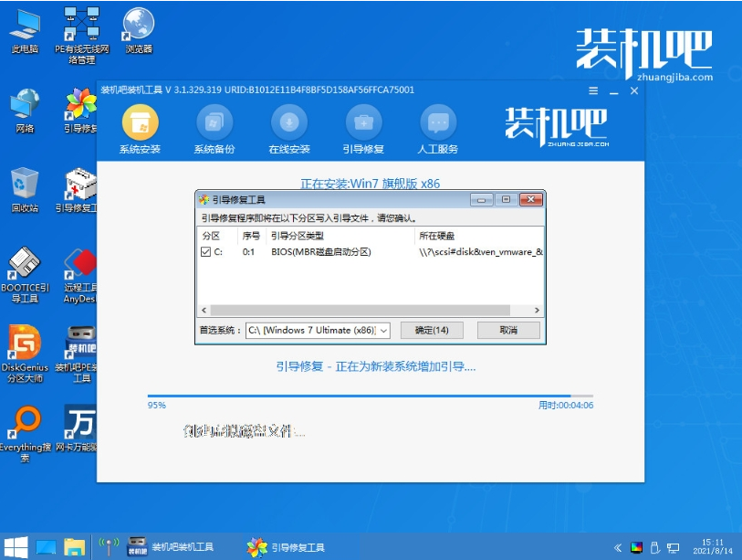 以上便是借助装机吧工具在线给笔记本电脑装win7系统的方法步骤,操作基本可以全自动完成,适合电脑小白用户,希望能帮到大家。