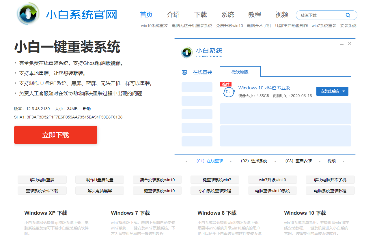 1、首先,到小白官网,下载安装小白一键重装软件。