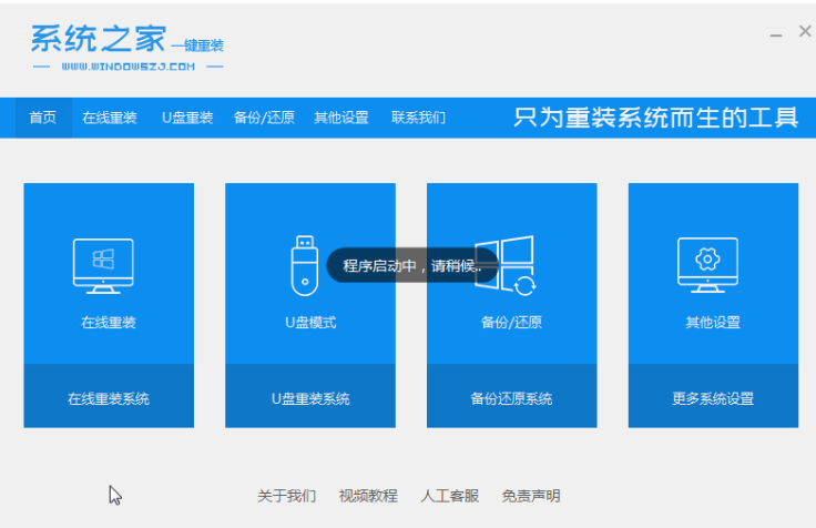 1、打开下载系统之家软件,然后选择【在线重新安装系统】。