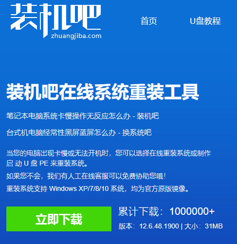 1、首先我们进入装机吧官网下载装机吧在线系统重装工具(装机吧官网:http://www.zhuangjiba.com/)