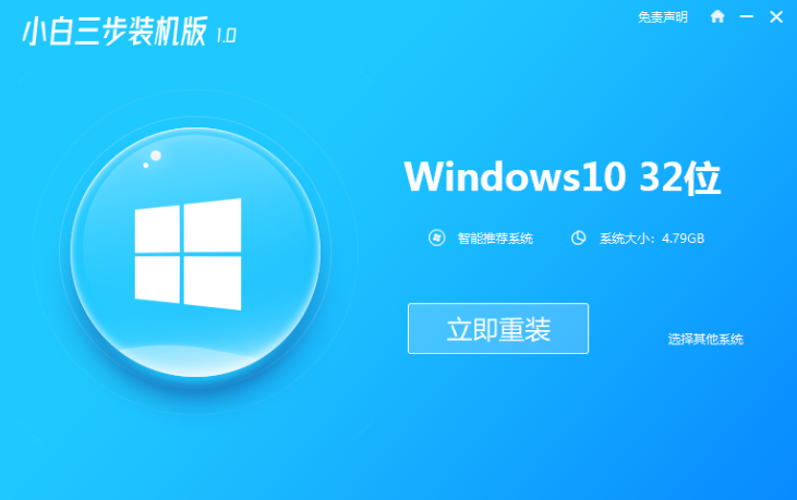 1、首先我们双击运行桌面当中的小白三步装机版软件,没有下载的可以前往小白一键重装系统官网进行下载,官网地址:http://www.xiaobaixitong.com/,我们进入到小白三步装机版软件的主页面,直接选择推荐的系统,然后点击右侧的立即重装。