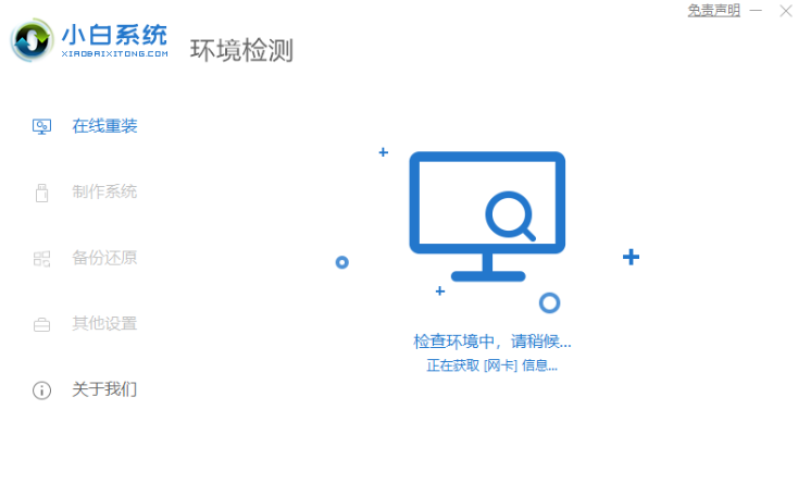 1.首先,打开小白一键重装系统软件,将u盘插入电脑。关闭杀毒软件,打开小白一键重装系统,小白会先检查电脑环境。