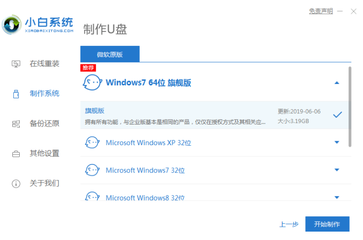 1.搜索下载小白一键重新安装系统。打开小白一键重装系统,点击制作系统,开始制作。