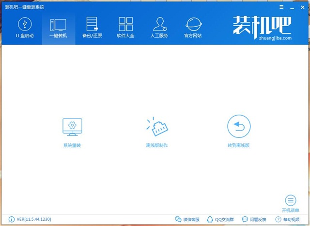 1、打开装机吧一键重装系统工具,然后点击系统重装