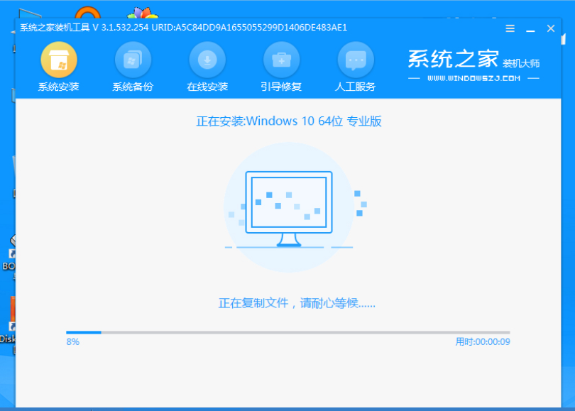 5、进入pe系统后,系统之家装机工具会自动开始安装win10系统。