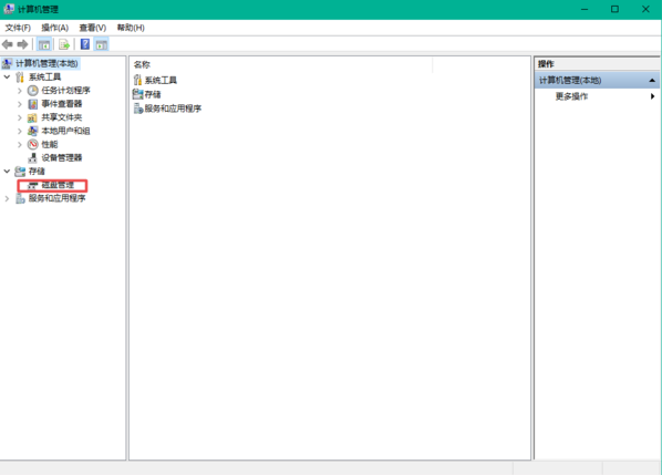 2.接着系统就会弹出【计算机管理】的窗口了,在此界面的左侧,我们找到【磁盘管理】选项,并点击进入。