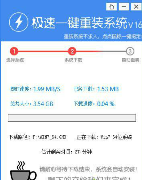 3、之后进入系统镜像下载过程,这时候你能做的只有等待,系统在下载完成后会自动安装系统;