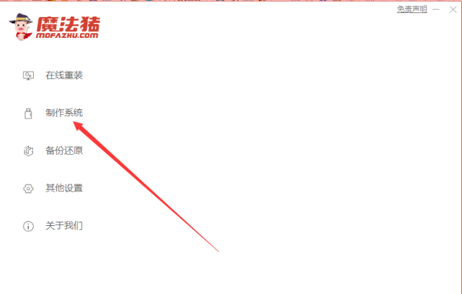 步骤一:下载并且打开魔法猪系统重装大师,选择制作系统里面的制作U盘即可。