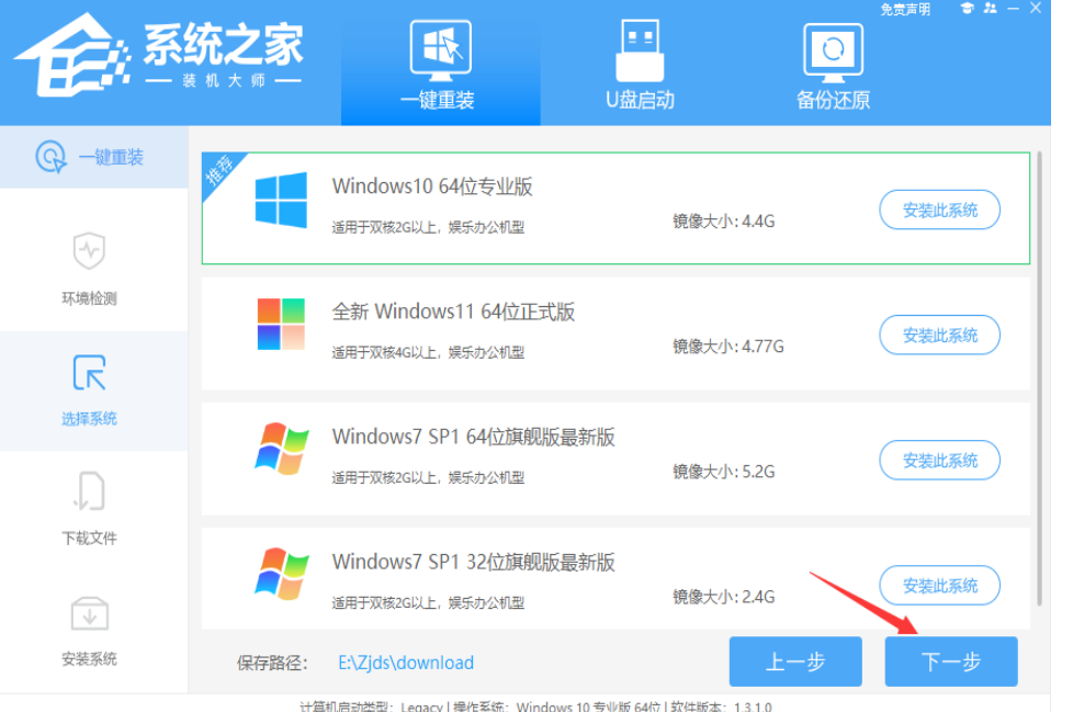 1、进入系统之家装机大师工具,选择安装Windows10 64位系统。