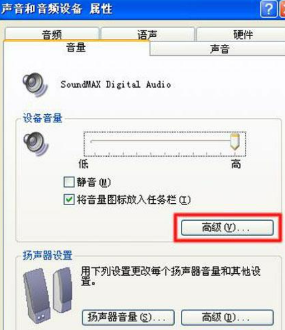 1.依次点击“开始”→“控制面板”→“声音、语音和音频设备”→“声音和音频设备”;